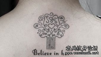 唯美的线条配合优雅的符号,是大多纹身爱好者的偏爱。要单色的纹身图案中表现自己的个性,需要很独到的创意。