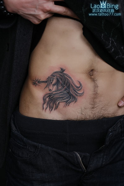 武汉专业纹身店:遮盖疤痕--腹部独角兽纹身图案作品