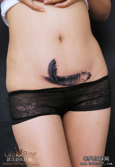 武汉专业纹身店:遮盖剖腹产疤痕--羽毛纹身图案作品