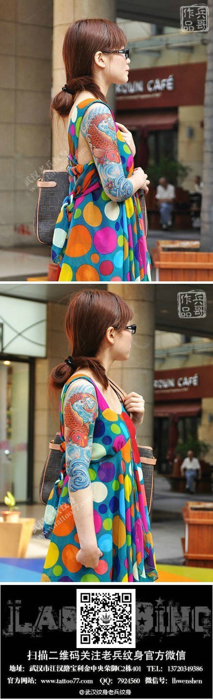 遮盖疤痕,花臂鲤鱼纹身由武汉最好纹身店老兵出品