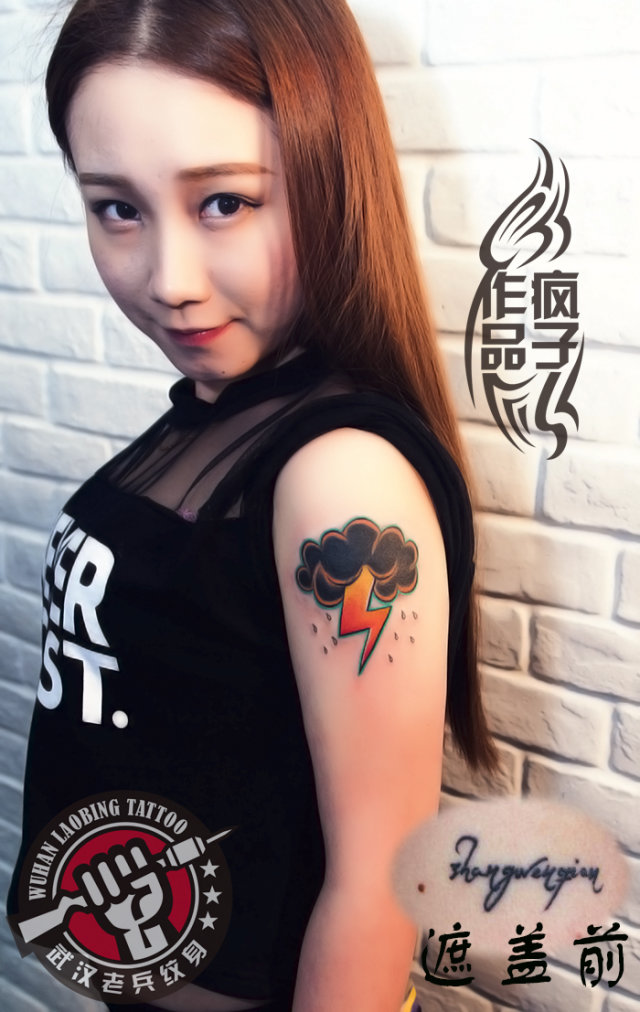 武汉最好纹身店打造的遮盖作品--大臂乌云纹身