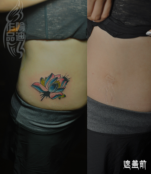 武汉最好纹身店打造的遮盖疤痕--腹部莲花纹身作品