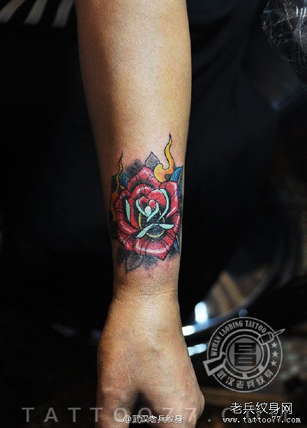 欧美玫瑰花纹身遮盖疤痕