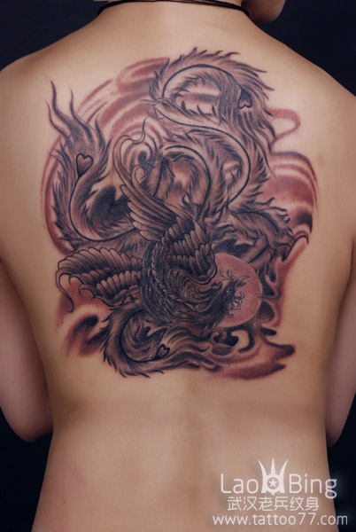 武汉最好纹身店:背部凤凰纹身图案作品