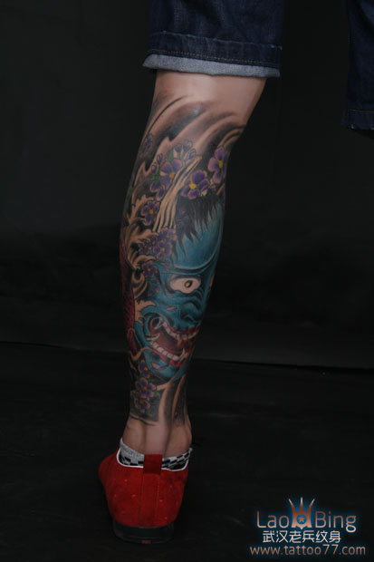 武汉专业纹身店:超有型的小花腿般若鲤鱼纹身图案作品