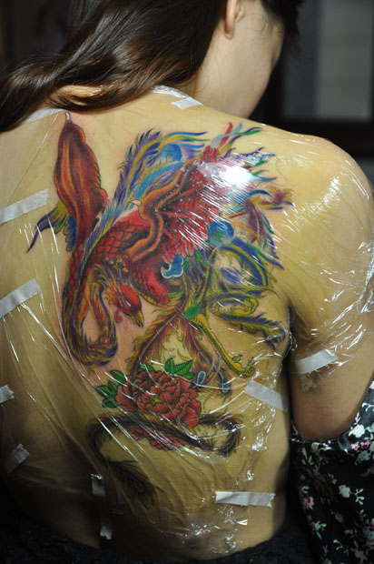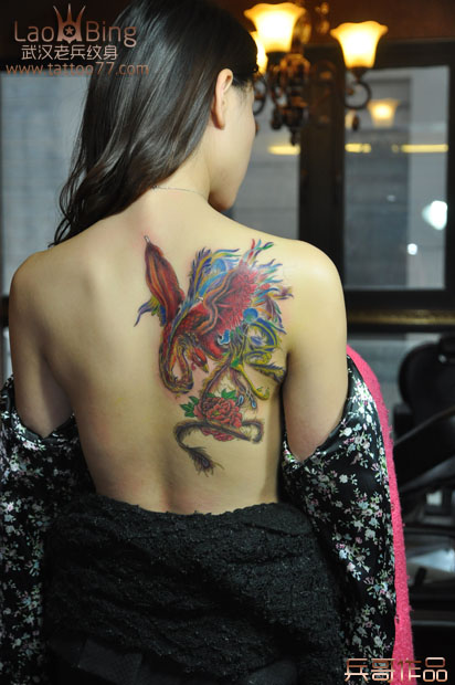 性感唯美的美女后背凤凰纹身由武汉最好纹身店老兵出品