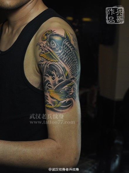 大臂招财鲤鱼纹身由武汉最好纹身店老兵打造