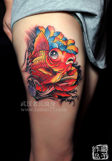 美女的腿部金鱼纹身由武汉最好纹身店打造