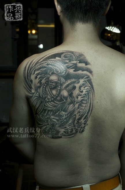 帅气的后背降龙罗汉纹身出自武汉最好纹身店