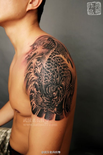 武汉最好纹身店打造的大臂鳌鱼纹身作品