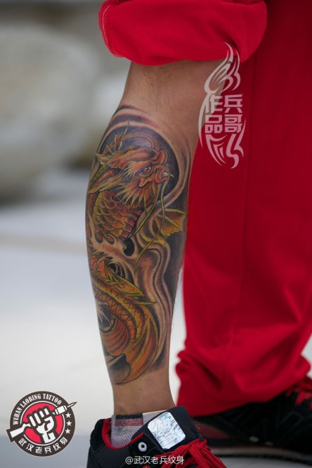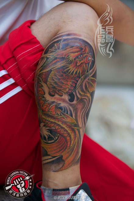 武汉最好纹身店打造的腿部鳌鱼纹身图案作品