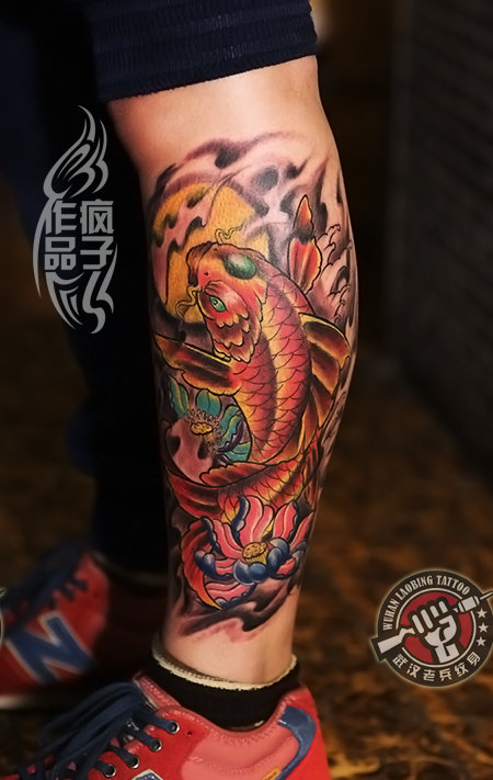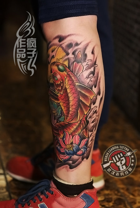 武汉最好纹身店打造的腿部鲤鱼纹身作品