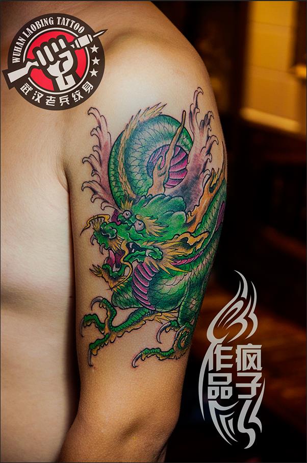 武汉最好纹身店打造的大臂传统龙纹身作品