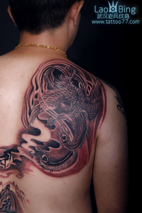 武汉纹身店:后背凤凰纹身图案作品
