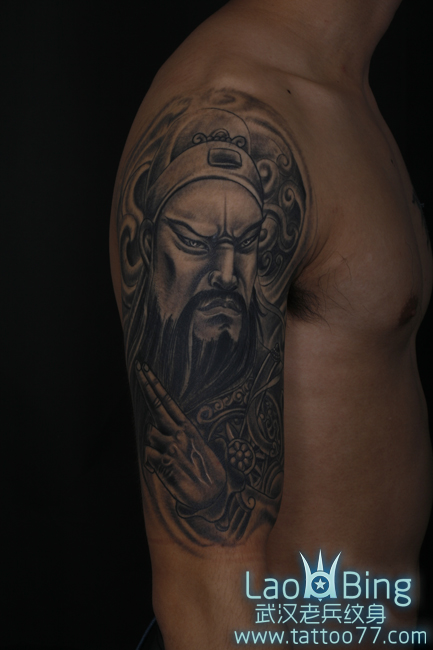 武汉专业纹身店:大臂关公纹身图案作品恢复后效果