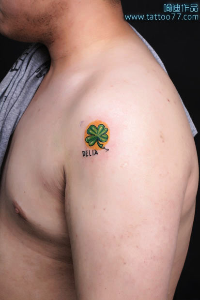 武汉专业纹身店:肩部四叶草纹身图案作品
