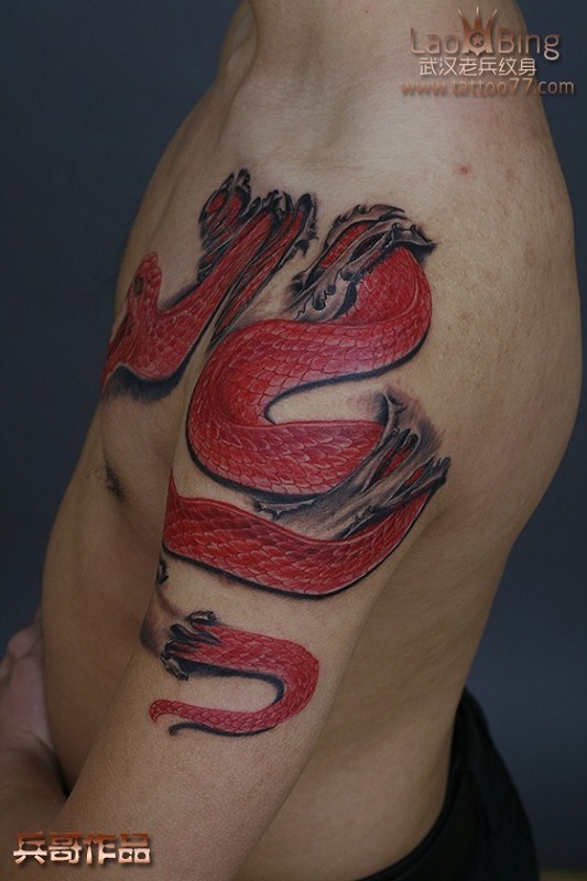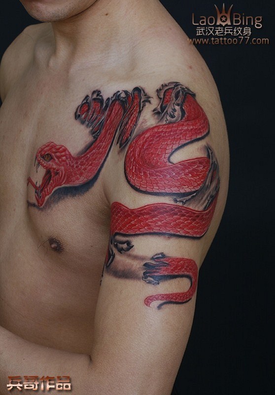 武汉专业纹身店:帅气的3D撕皮蛇纹身图案作品