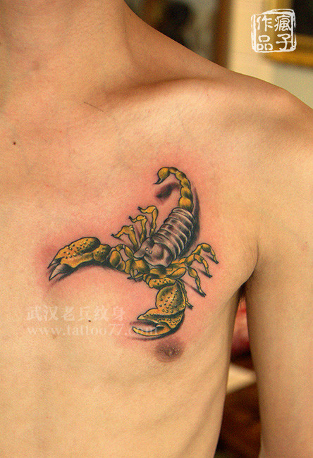 武汉最好纹身店打造的胸口蝎子纹身作品