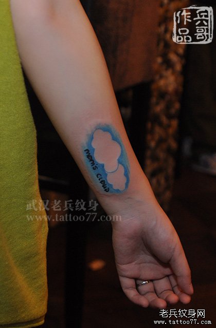 武汉最好纹身店老兵刺青打造的手臂浮云文字纹身