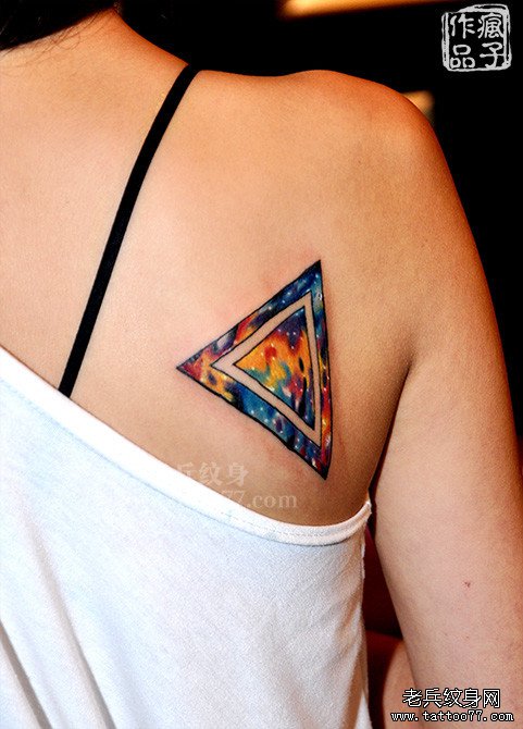 武汉最好纹身店打造的背部星空三角形纹身作品
