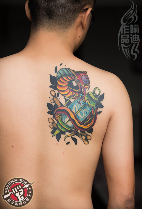 武汉最好纹身店打造的后背SCHOOL蛇恢复效果