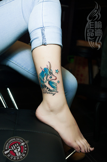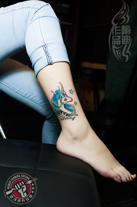 武汉最好纹身店打造的腿部独角兽纹身作品