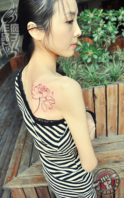 武汉最好纹身店打造的美女后背水墨莲花纹身