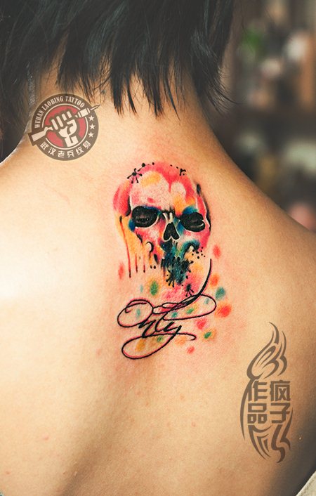 武汉最好纹身店打造的彩色骷髅纹身作品