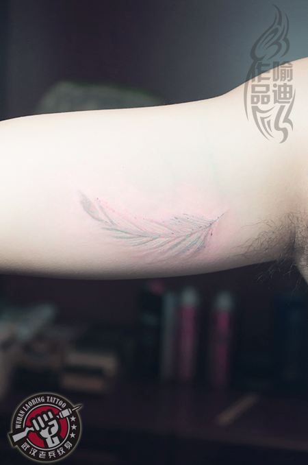 武汉最专业纹身店打造的白色羽毛纹身作品