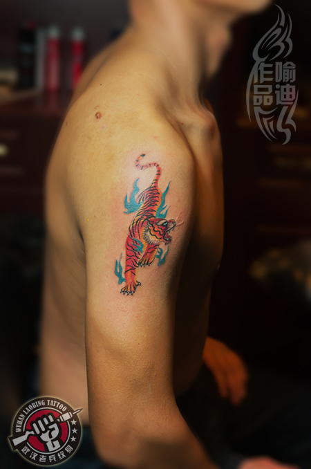 武汉最好纹身店打造的大臂小老虎纹身作品