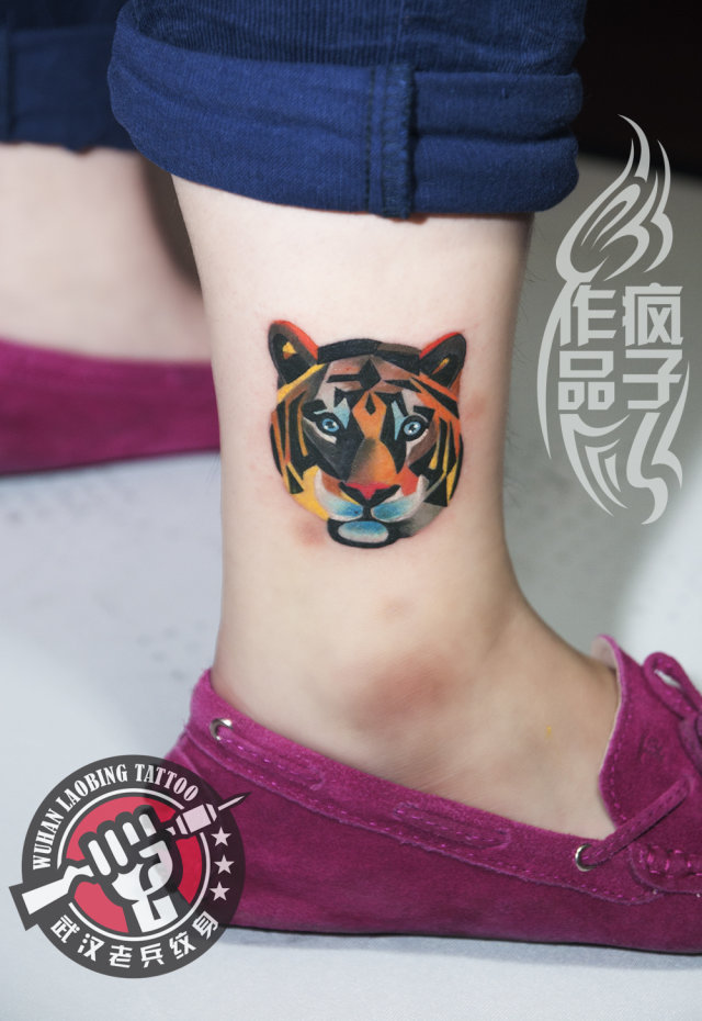 武汉最好纹身店打造的脚踝个性小老虎纹身