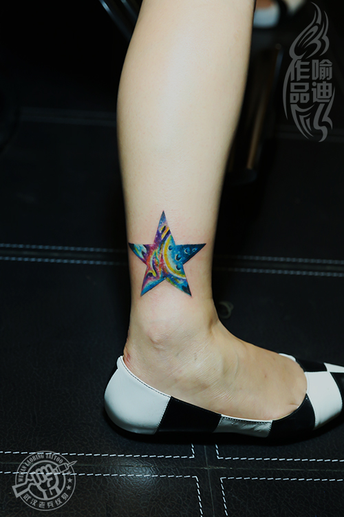 武汉专业纹身店打造的脚踝星空纹身作品