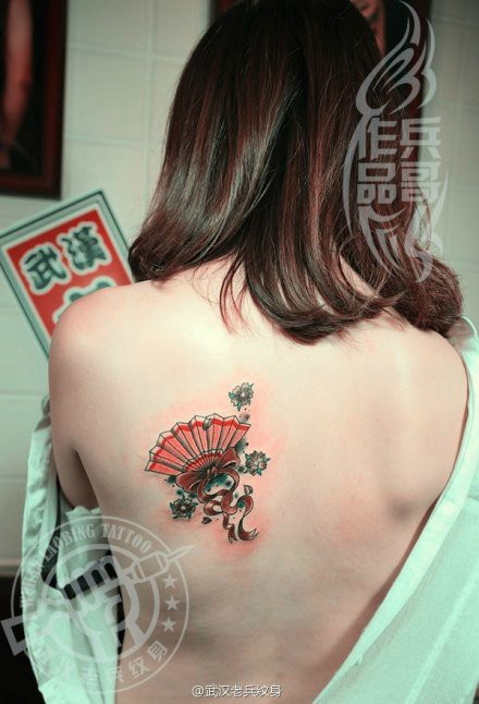 武汉专业纹身店打造的美女背部扇子纹身作品