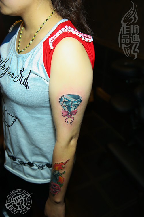 武汉最好纹身店打造的遮盖旧图--钻石蝴蝶结纹身