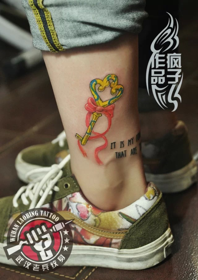 武汉最好纹身店打造的腿部钥匙纹身作品