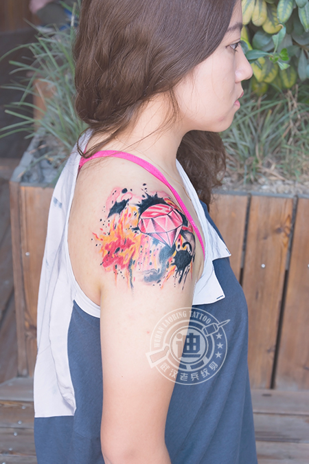 武汉最好纹身店打造的泼墨钻石纹身作品