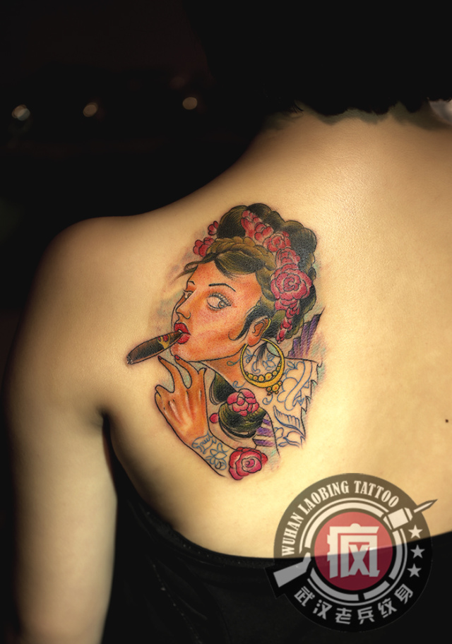 武汉最好纹身店打造的SCHOOL女郎纹身作品