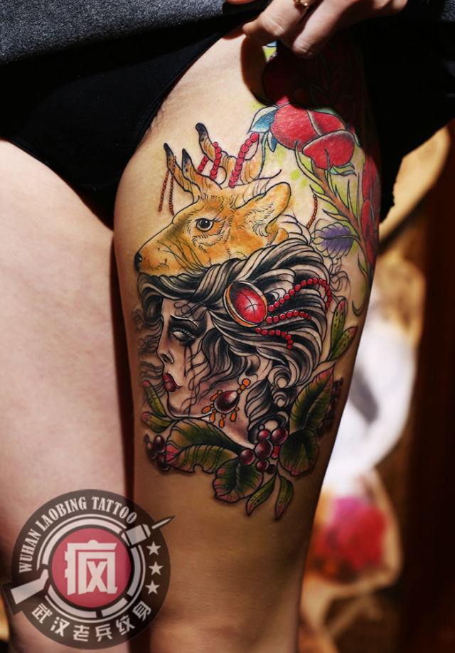 大腿SCHOOL女郎纹身作品