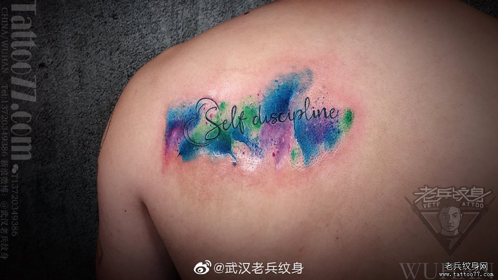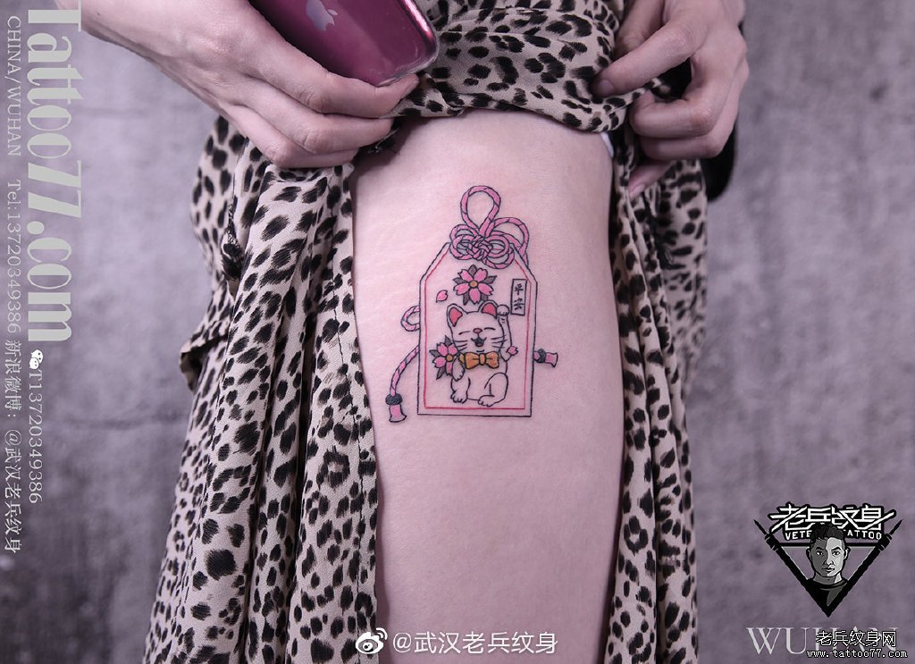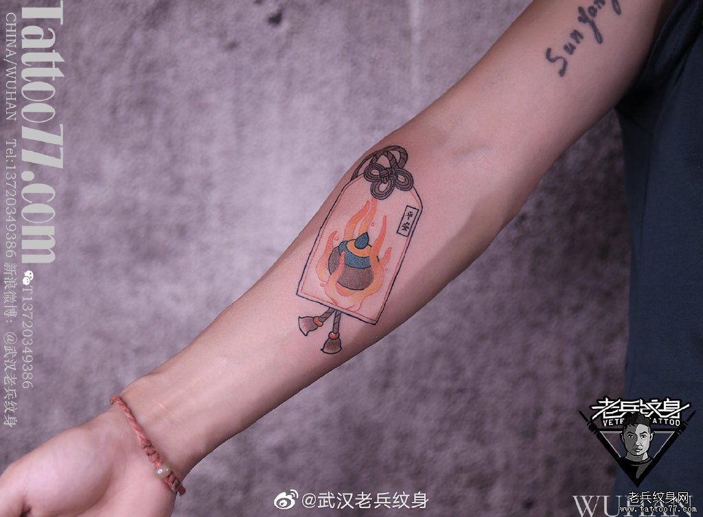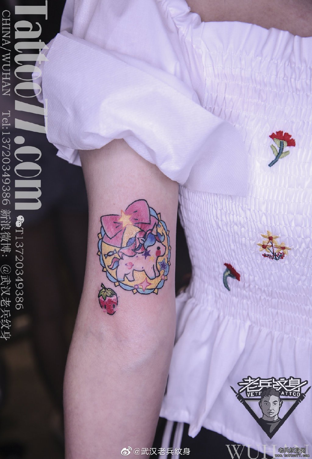 手臂内侧蝴蝶结独角兽彩色纹身作品
