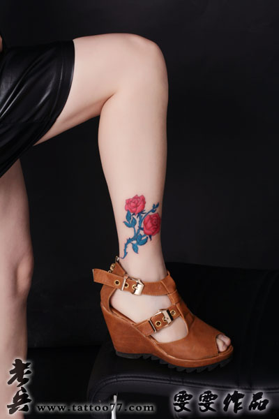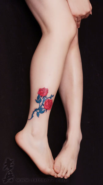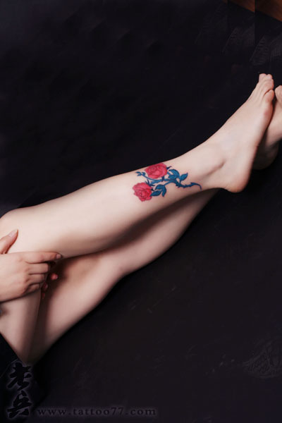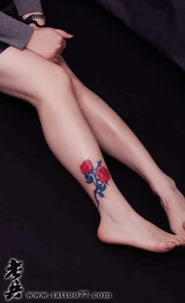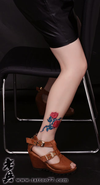 玫瑰纹身 腿部纹身 腿部玫瑰纹身