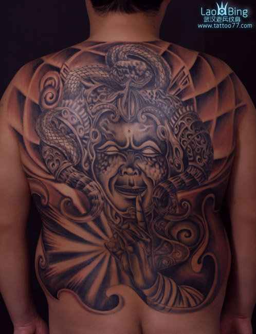 武汉专业纹身店:霸气的满背佛纹身图案作品