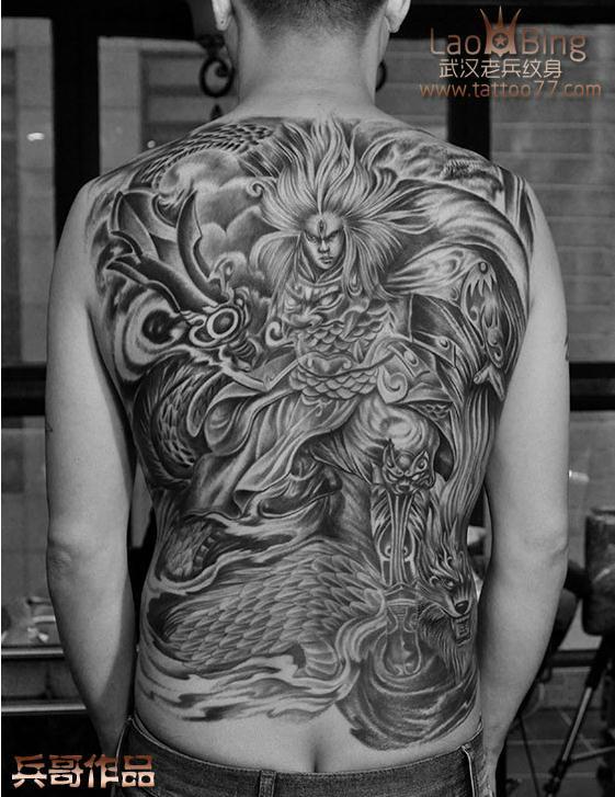 霸气的满背二郎神纹身由武汉最好纹身店老兵纹身打造