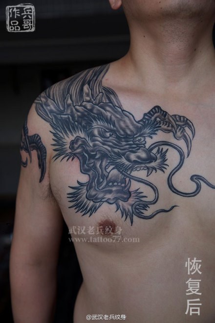 武汉最好纹身店打造的霸气过肩龙纹身作品恢复效果