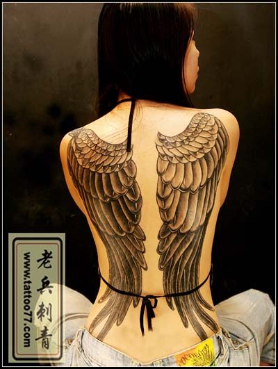女性满背翅膀纹身作品 女性满背翅膀纹身作品