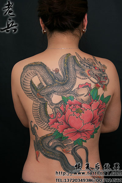 满背龙与牡丹恢复后效果