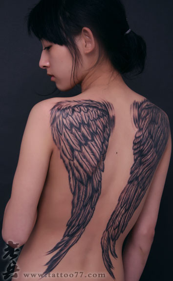 武汉纹身店:美女性感满背翅膀纹身