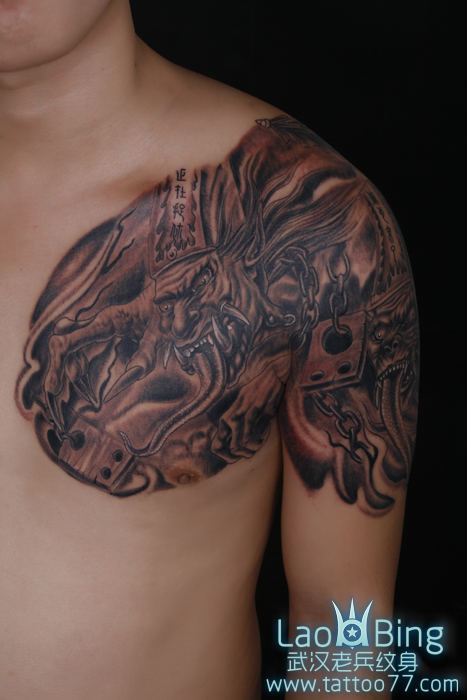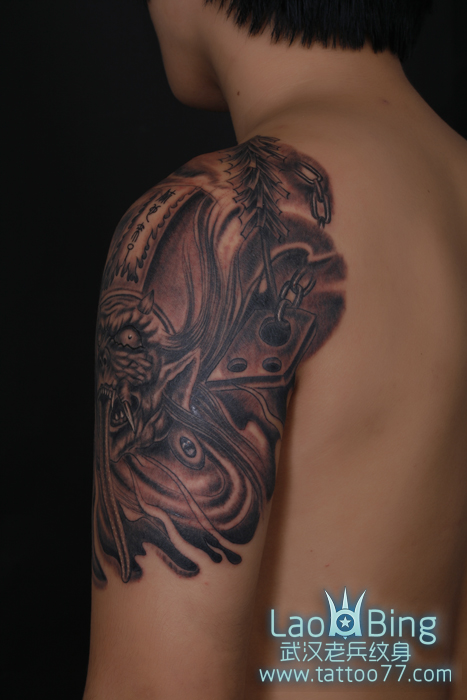 武汉专业纹身店:帅气的半胛黑白无常纹身图案作品