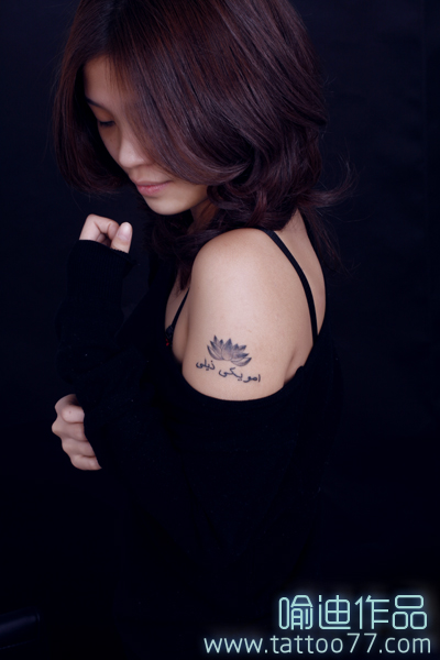 武汉专业纹身店:美女大臂莲花文字纹身恢复效果