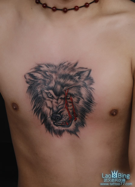 武汉专业纹身店:胸口狼头纹身图案作品