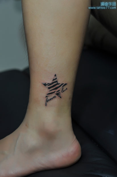 武汉专业纹身店:时尚的腿部五角星纹身图案作品
